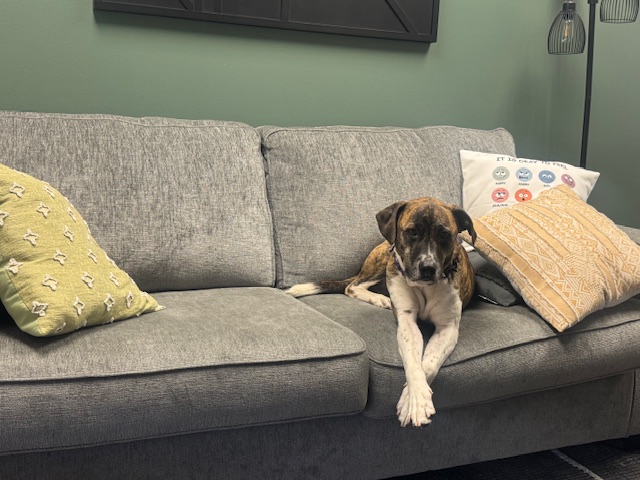 Looking for a calmer, more comfortable counseling experience? Violet, our therapy dog in training at Let’sTalk! Counseling in Carrollton, Texas, helps create a warm, welcoming space while you and your therapist do the work of healing and growth.